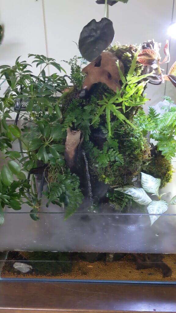 生き物との暮らしは、川で捕まえた川エビ(無料)の飼育からでした。 始めてのアクアテラリウムです。 -